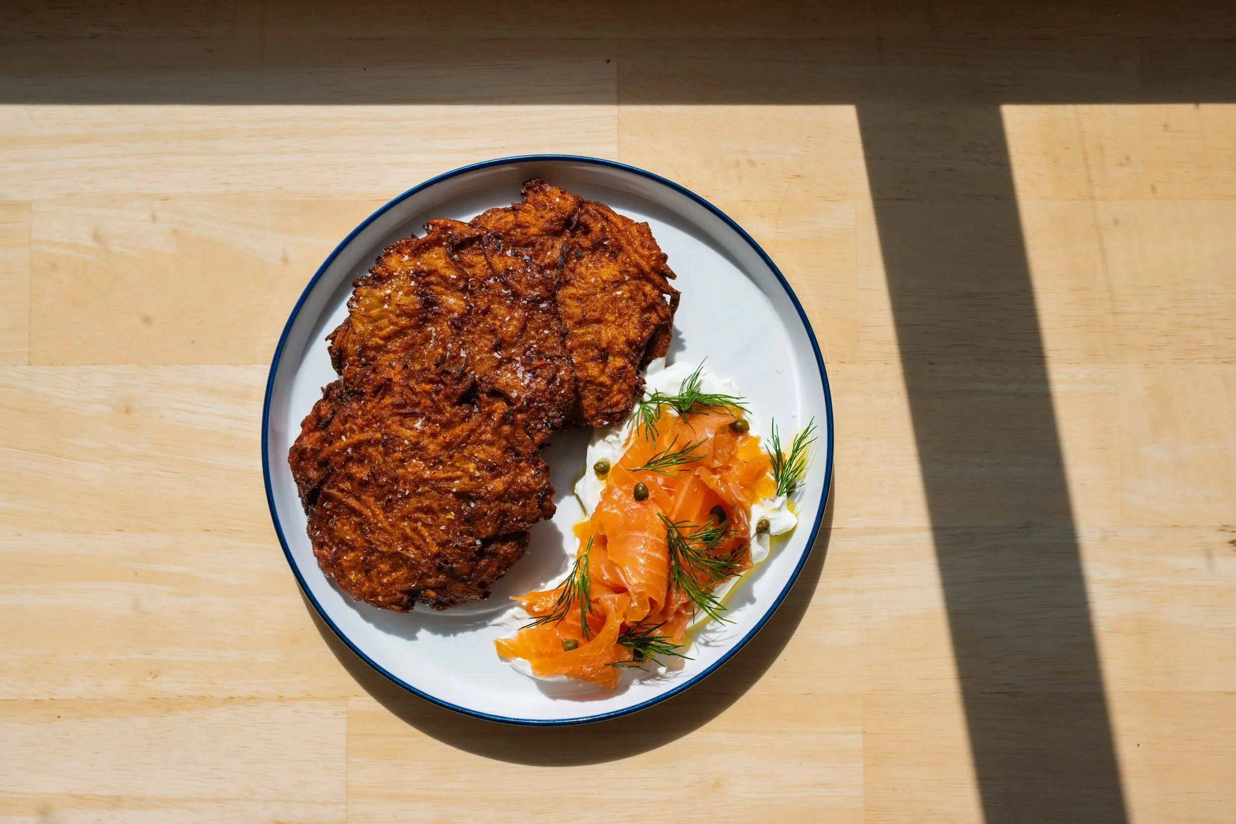 Potato Latkes, Smoked Salmon, Labneh, Capers, Dill