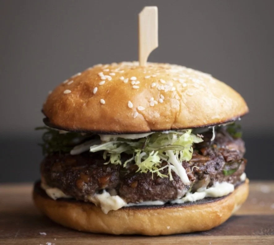 Kurobuta Pork, Maitake Mushrooms, Yuzu Kosho Aïoli, and Sesame Potato Bun
