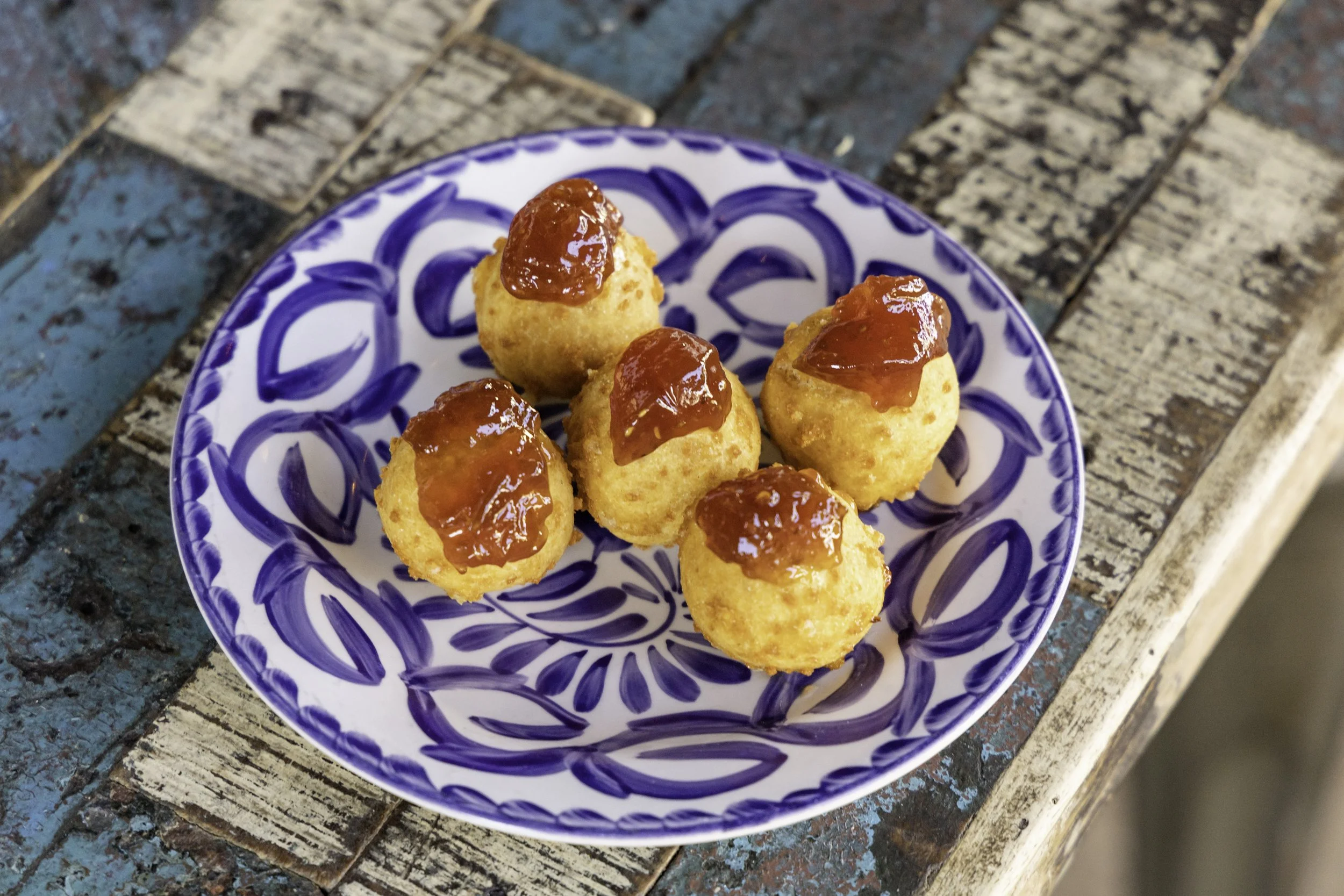 “Every country has their own take on buñuelos. Growing up in a Cuban household, we always had ones that were made with cassava and yuca. I added in a Columbian kick with the use of masa harina and tied in some Spanish notes as well with the addition of jamón serrano. The Mahón-Menorca PDO cheese brings the entire dish together. It is added to the dough for texture, and also incorporated into the center to create a cheesy pull.” - Chef Monica "Mika" Leon