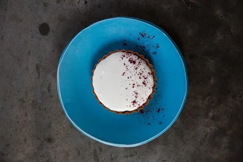 Into the Tart Shells, spoon a thin layer of Orange Marmalade and top with 2 tablespoons Candied Pecans. Spoon Chocolate Ganache over pecans and dispense warm Deer Creek Cheddar Espuma over the ganache. Place tart on a plate. Dust one-third of the tart and plate to either side with Dehydrated Berries.