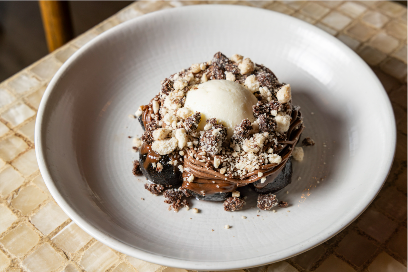 Lokma, TCHO Milk Chocolate Ganache, Cookie Crumb, Kaymak Ice Cream