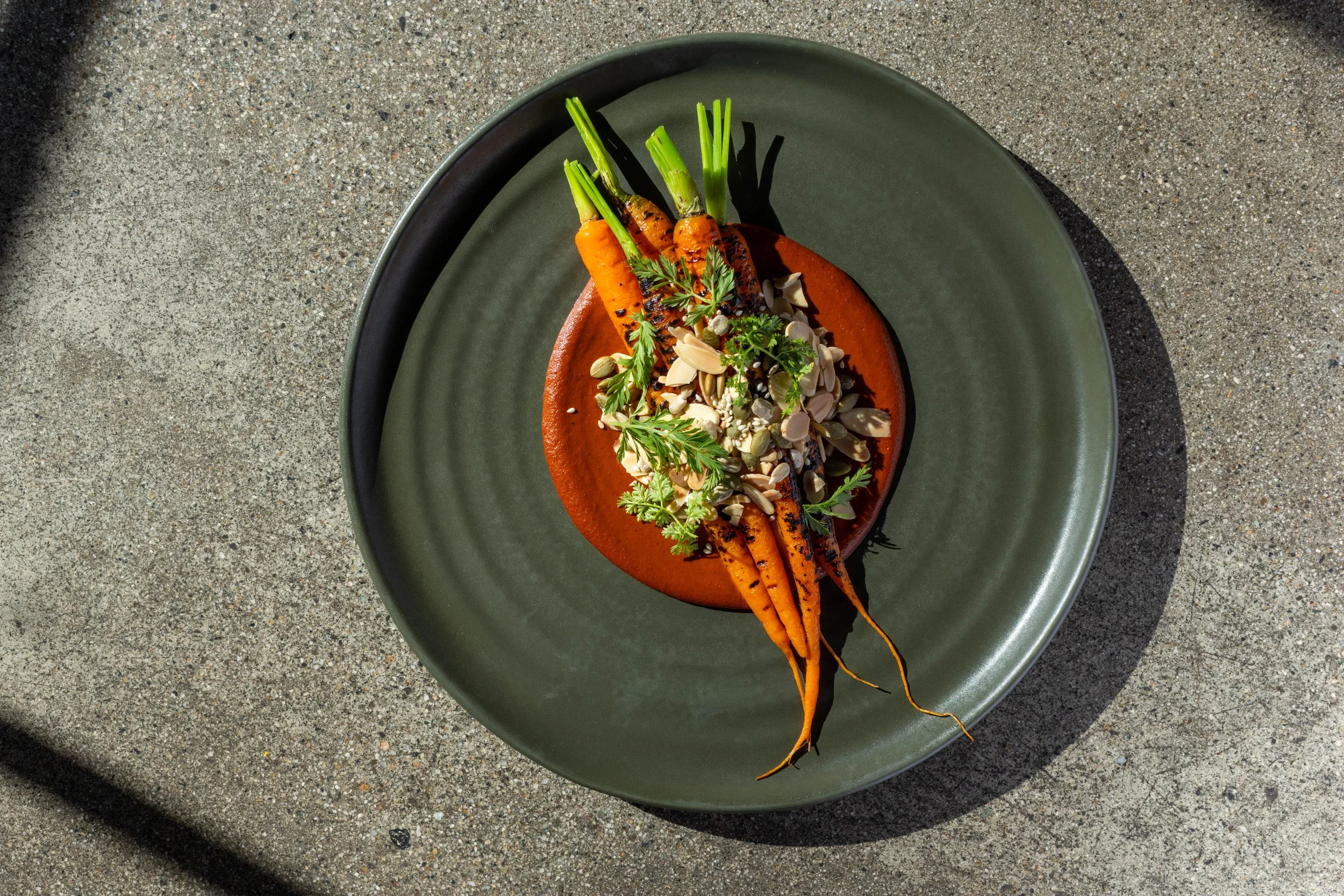 Mole felt like a natural choice as the foundation of the dish as nuts tend to play an integral part in most mole recipes. The California almonds bring a clean, round richness and a softness that gives the mole structure without feeling heavy. They allow the toasted chiles, warm spices, and subtle bitterness to come through clearly, creating a sauce that feels familiar, but lighter and more precise. The mole is paired with simply grilled carrots, a vegetable I love, but honestly haven’t featured too often at Damian. They bring sweetness, texture, and a bit of char to balance the sauce. Keeping the vegetables straightforward allows the more complex flavors of the mole, and especially the California almonds, shine.