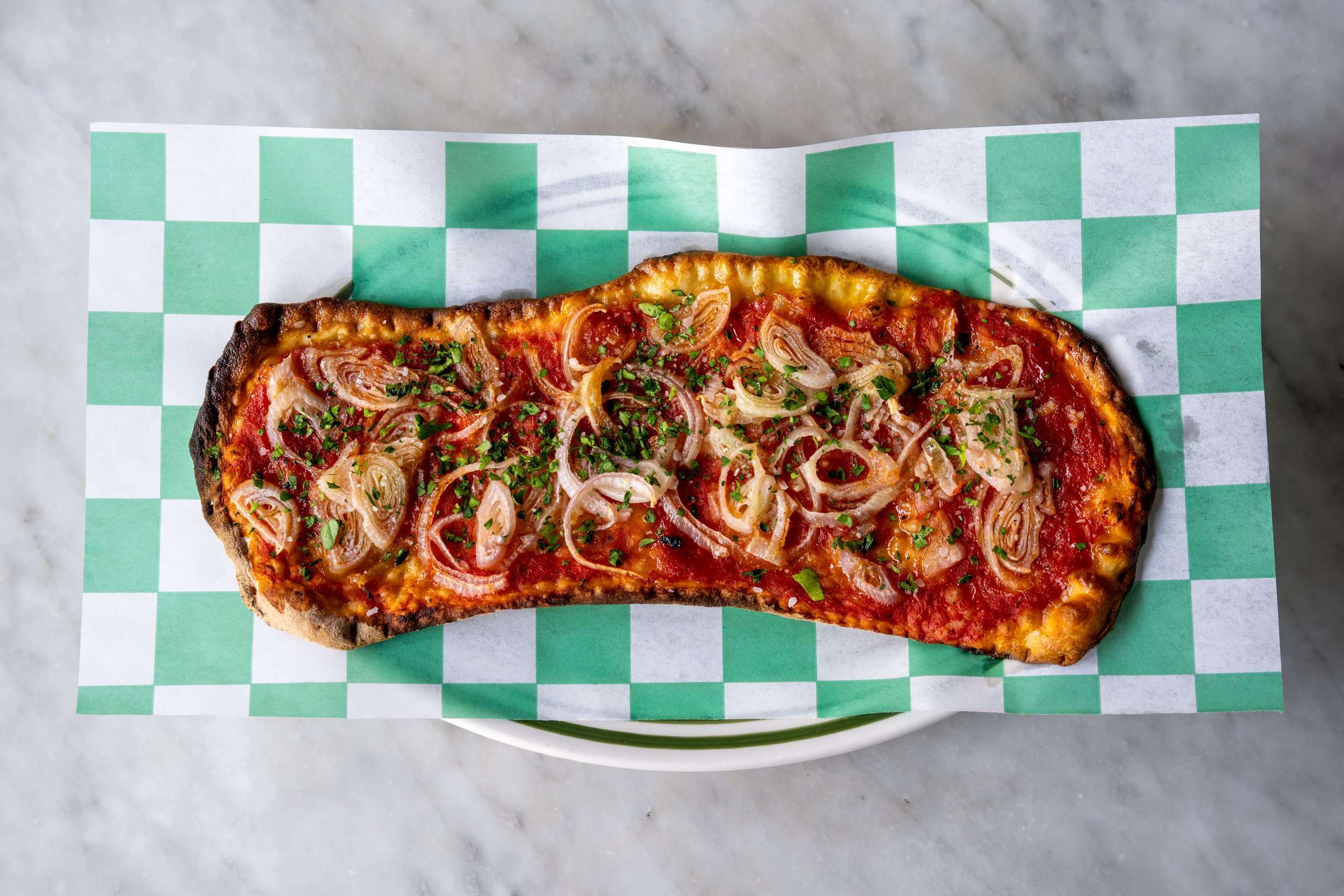 Marinara Sauce, Garlic, Breadcrumbs, Stracciatella, Basil, Parmigiano Reggiano | Restaurateur David Foulquier of Eleventh Street Pizza