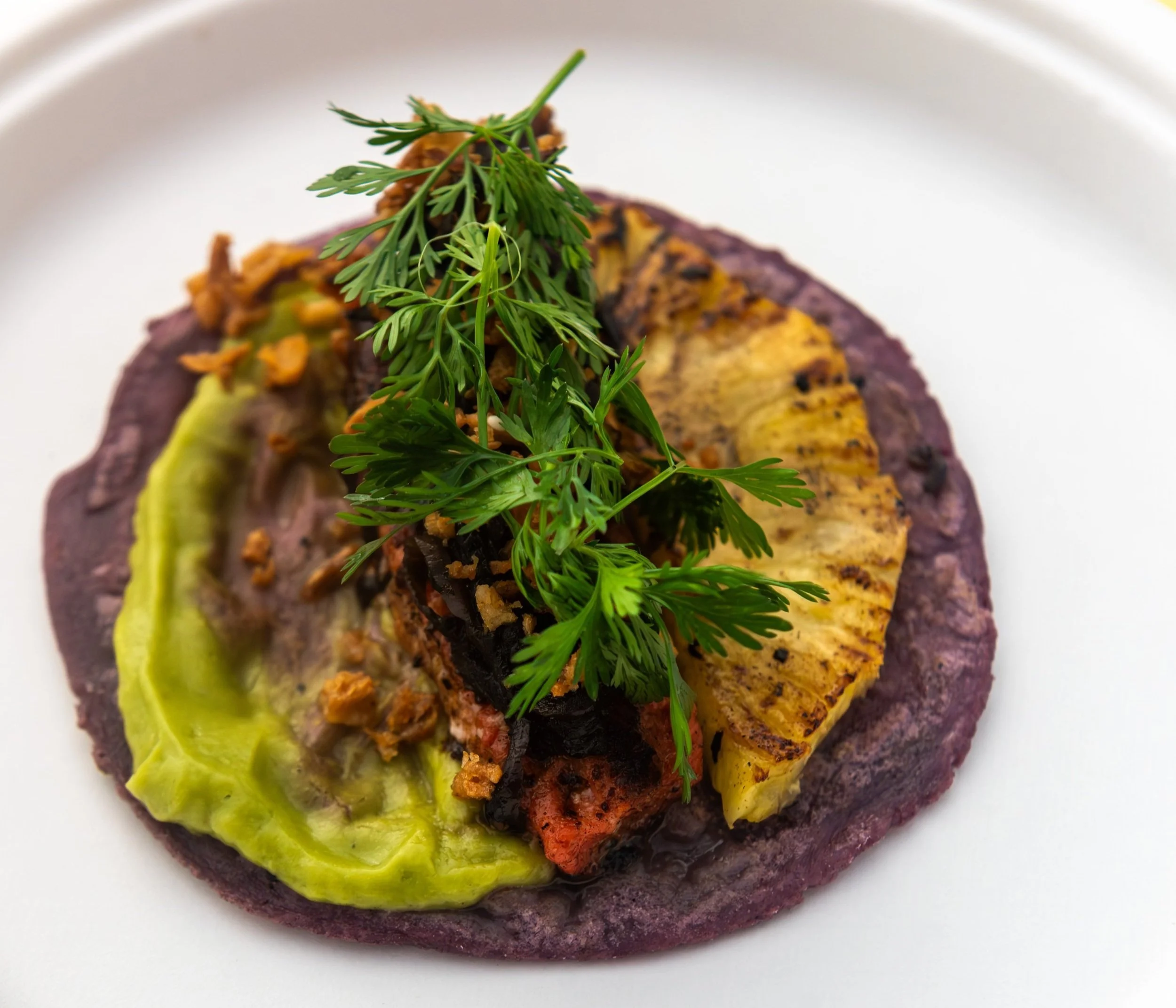 Grilled Pineapple, Guacamole, Grilled Onion, Crispy Onions, Cilantro, Blue Corn Tortilla