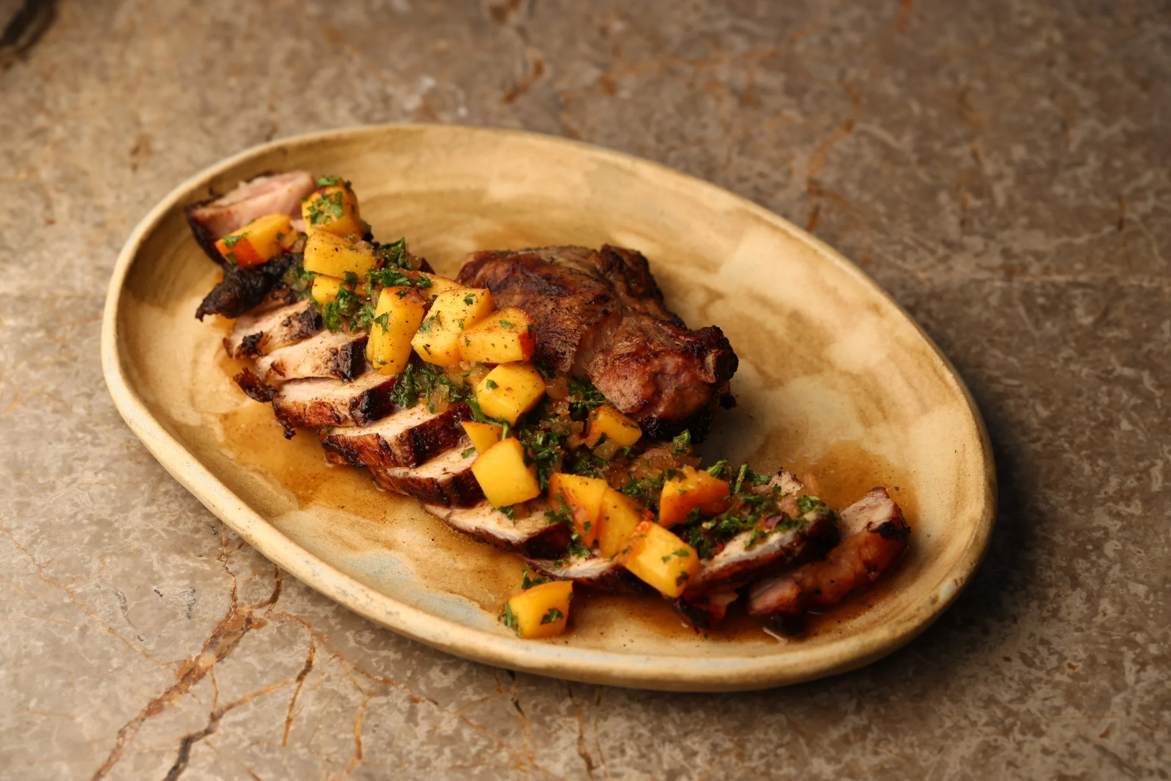 “I chose to do this dish because it’s what I personally eat all the time. Los Angeles is still warm with summer produce so the addition of the peaches in the warmed brown butter sauce just sounded on point. The brown butter is nutty in aroma. The Sherry Vinegar from Spain brightens all of the ingredients in the dish while adding a rich oakiness.” - Chef Christian Truong