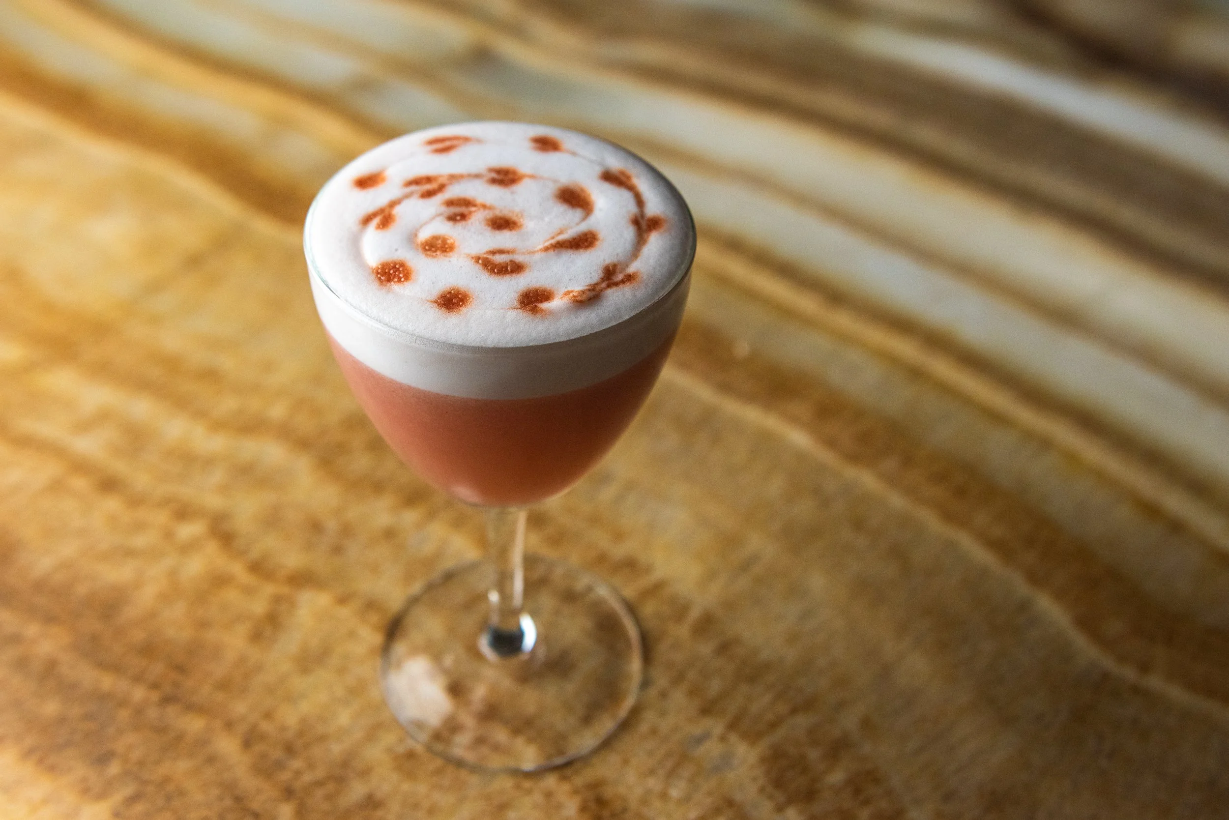 At Trummer’s Restaurant in Clifton, Virginia, Austria-born Restaurateur and Rising Stars alum Stefan Trummer builds a menu of familiar dishes like Schnitzel served with lingonberry jam. “Schnitzel and lingonberry is something I’m always eating,” says Bar Manager Mike Marino. “I love the bitterness and sweetness together.” To transform the familiar flavors into a sophisticated sip, Marino leaned on an old favorite. “Singani is super floral, it’s been one of my favorite spirits for a really long time,” he says. The brandy, distilled in Bolivia from muscat grapes, has a profile that resembles Pisco, so it made sense to shake that Singani into a sour variation with lingonberry and rosemary simple syrup. “The herbaceous rosemary complements the lingonberry and floral notes of the Singani,” says Marino. Refreshing and smooth, lightly floral, with bright fruit and the lush body of an egg white, the Shaker on Mute is a Bolivian-Austrian-inspired sour that’s right at home in Virginia.