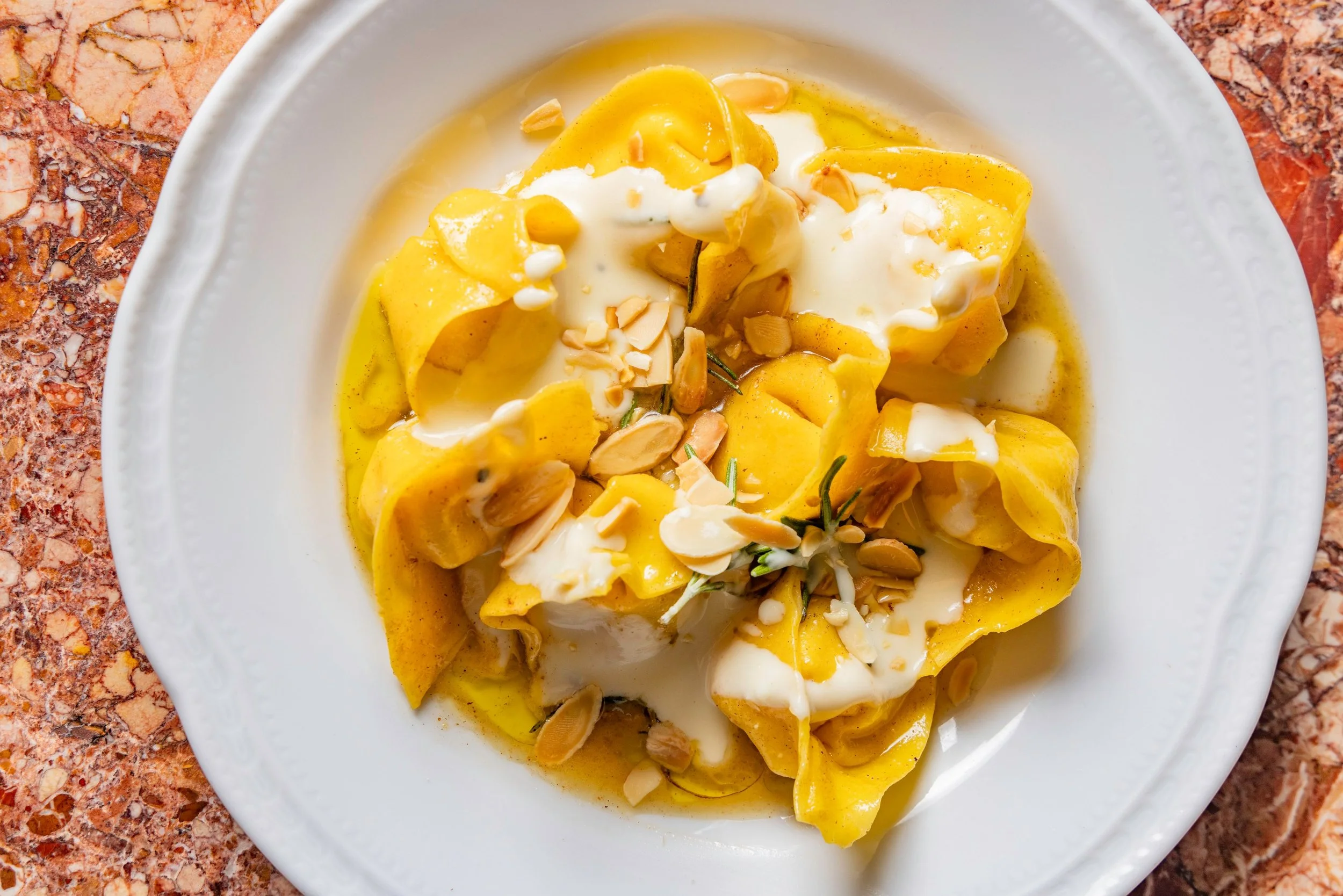 Rosemary Butter Sauce, Pecorino Romano PDO Fonduta, Toasted Almonds
