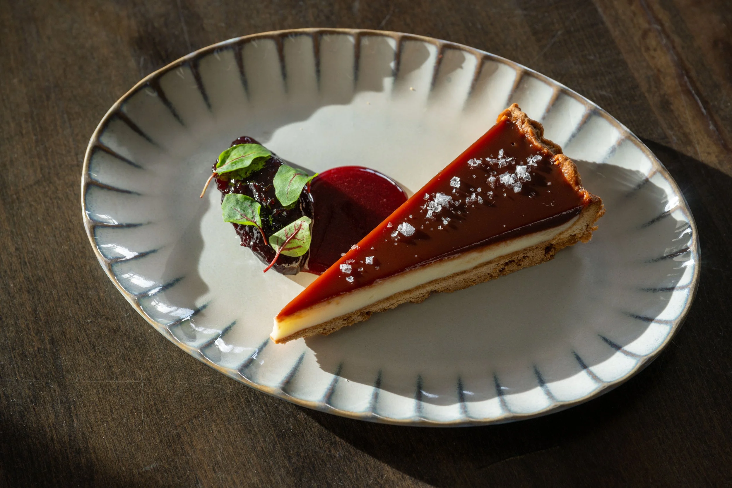 Cherry Gelée, Cherry Sauce, Parmesan Crust, Flaky Salt, Sorrel